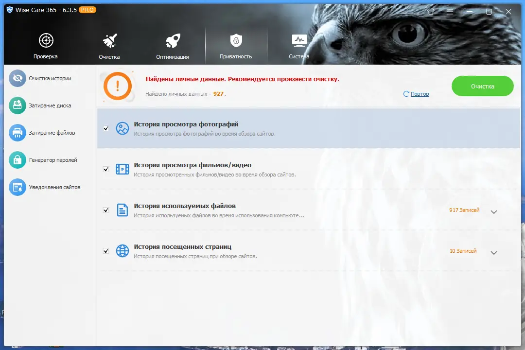 - Защита приватности путем удаления следов работы в сети и на компьютере.