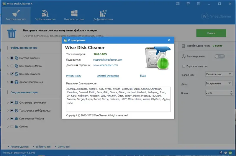 Wise Disk Cleaner — это современная системная утилита, предназначенная для очистки жесткого диска от мусорных файлов. Она определяет более 50 типов временных и ненужных файлов, включая временные файлы браузеров, системные кэши, файлы журналов и другие виды мусора. Пользователи могут скачать программу бесплатно с официального сайта, а также выбрать русскую версию, чтобы работать на родном языке. Благодаря простому интерфейсу и множеству автоматизированных функций, программа подходит как новичкам, так и опытным пользователям, желающим повысить эффективность работы ПК.