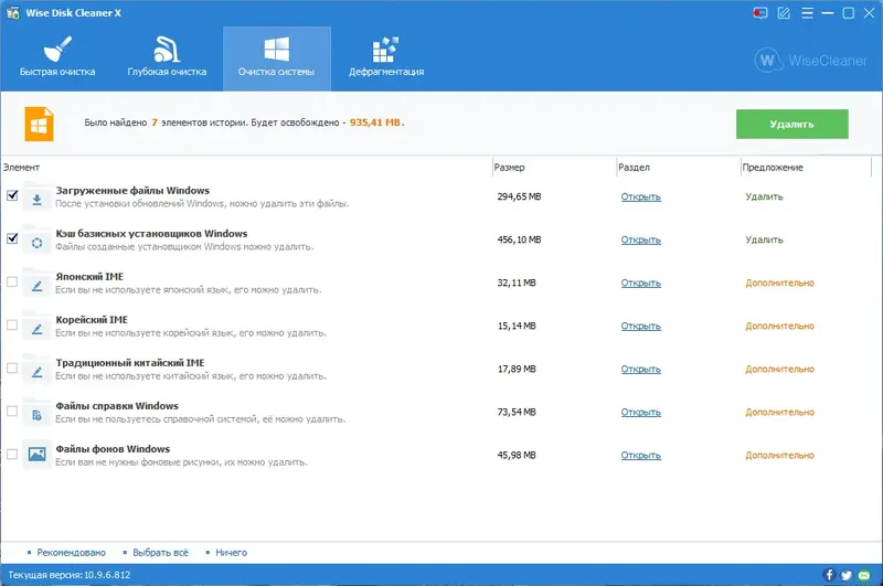 - Эффективное сканирование и удаление временных и мусорных файлов.