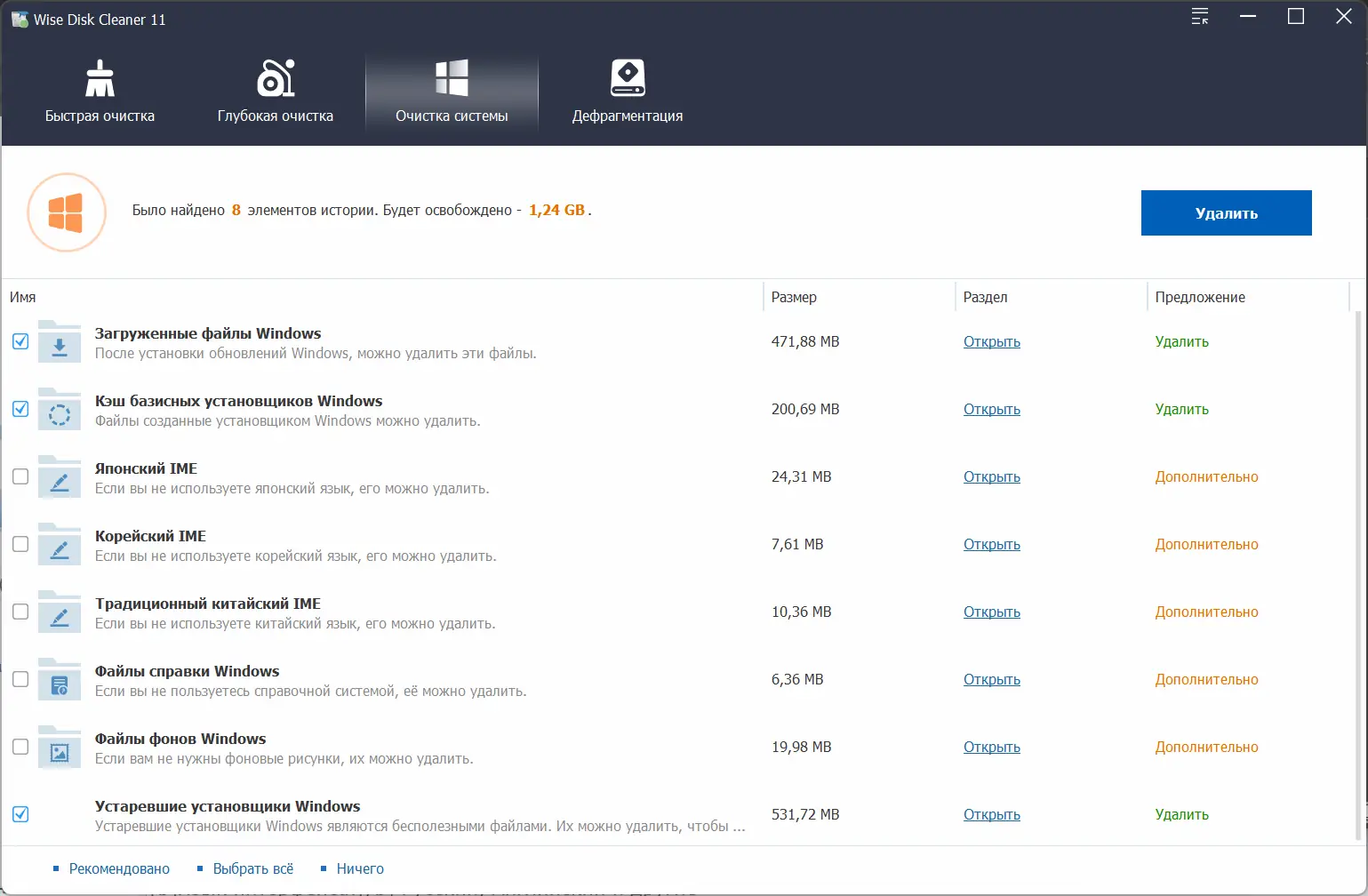 Эффективное решение для ускорения работы системы и освобождения места на диске.