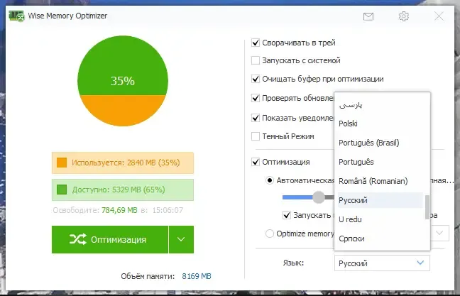 - Бесплатная и легкая в использовании программа для очистки памяти.