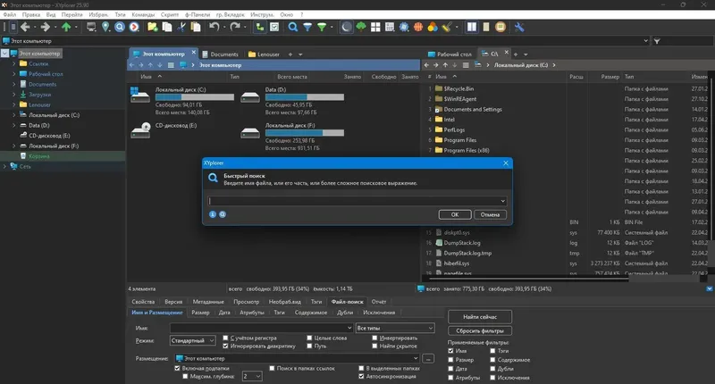 XYplorer — это универсальный файловый менеджер, который идеально подойдет как для опытных пользователей, так и для новичков. Он напоминает стандартный проводник Windows, но обладает значительно большим функционалом, включая расширенные инструменты поиска, настройку интерфейса и работу с множеством вкладок. Удобство использования и возможность полной адаптации под личные предпочтения делают его одним из лучших решений в категории системных утилит.