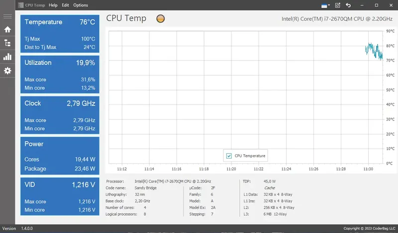 CPU Temp — это универсальное программное обеспечение для мониторинга состояния процессора, которое позволяет получать подробную информацию о температурных показателях, загрузке и энергопотреблении системы. Совместимо с операционными системами Windows и Linux, а также подходит для использования на мобильных устройствах под управлением Android. Благодаря интуитивно понятному интерфейсу и широким возможностям настройки, программа идеально подходит для системных администраторов, энтузиастов и обычных пользователей, желающих контролировать работу своего ПК или ноутбука.