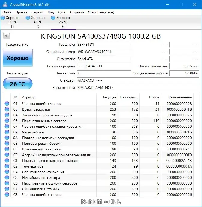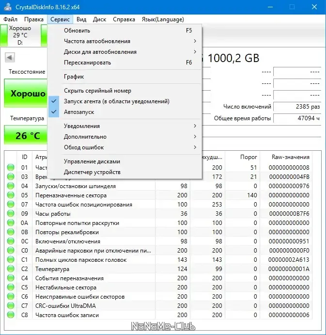 - Отображение параметров системы S.M.A.R.T. и предупреждение о возможных сбоях.