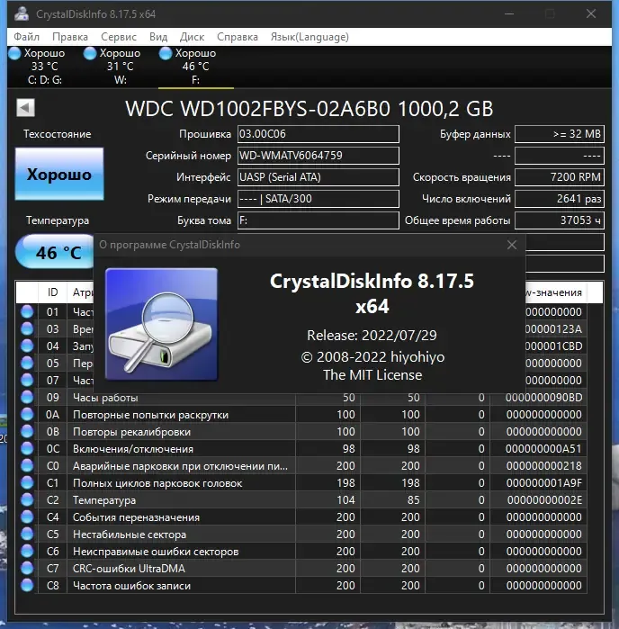 Описание CrystalDiskInfo