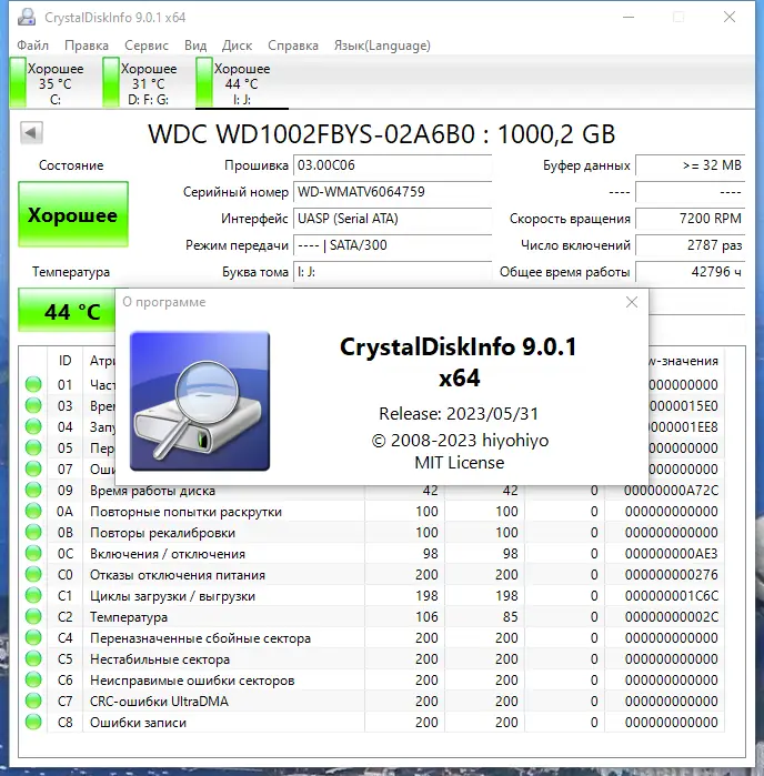 CrystalDiskInfo — это бесплатное программное обеспечение, предназначенное для работы с жесткими дисками и SSD-накопителями. Оно поддерживает как внутренние, так и внешние устройства с интерфейсами USB и IEEE 1394. Программа отображает подробную информацию о каждом диске, включая прошивку, серийный номер, стандарт, интерфейс и общее время работы. Также она показывает параметры системы самодиагностики S.M.A.R.T., такие как ошибки чтения, производительность, циклы включения и выключения, а также ошибки секторов. Возможность динамического отслеживания изменений и отображение данных на графике позволяют быстро определить текущий статус диска. В программе реализована поддержка различных чипов и контроллеров, что обеспечивает широкую совместимость. CrystalDiskInfo можно скачать на русском языке с официального сайта, что делает её удобной для пользователей из разных стран. Также есть версия Portable, которая не требует установки и позволяет запускать программу с любого носителя. Для тех, кто ищет надежный инструмент для проверки SSD и HDD, эта программа станет незаменимым помощником.
