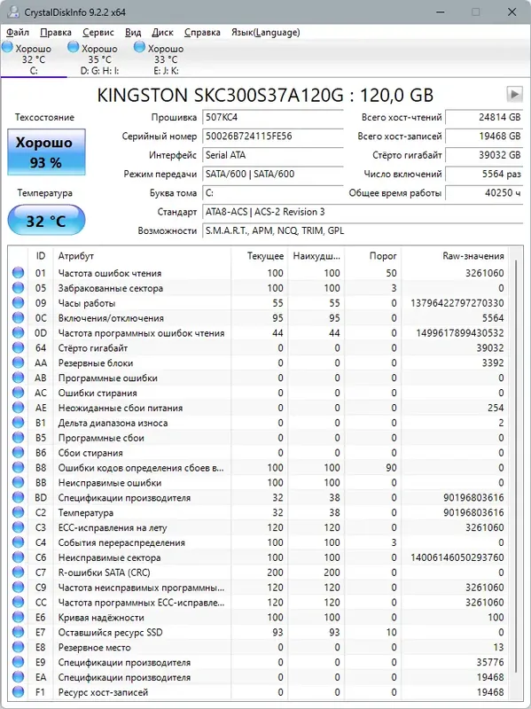 Использование CrystalDiskInfo помогает как проверить состояние SSD и HDD, так и своевременно обнаружить возможные сбои и ошибки.