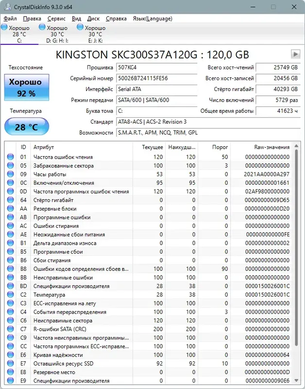 CrystalDiskInfo предоставляет подробную информацию о состоянии жестких дисков, включая параметры температуры, скорости вращения и ошибок. Она отображает показатели системной диагностики S.M.A.R.T., что помогает своевременно выявлять сбои и предугадывать возможные неисправности. Программа поддерживает работу с внутренними и внешними накопителями, а также обеспечивает динамическое отслеживание изменений для всех подключенных устройств.