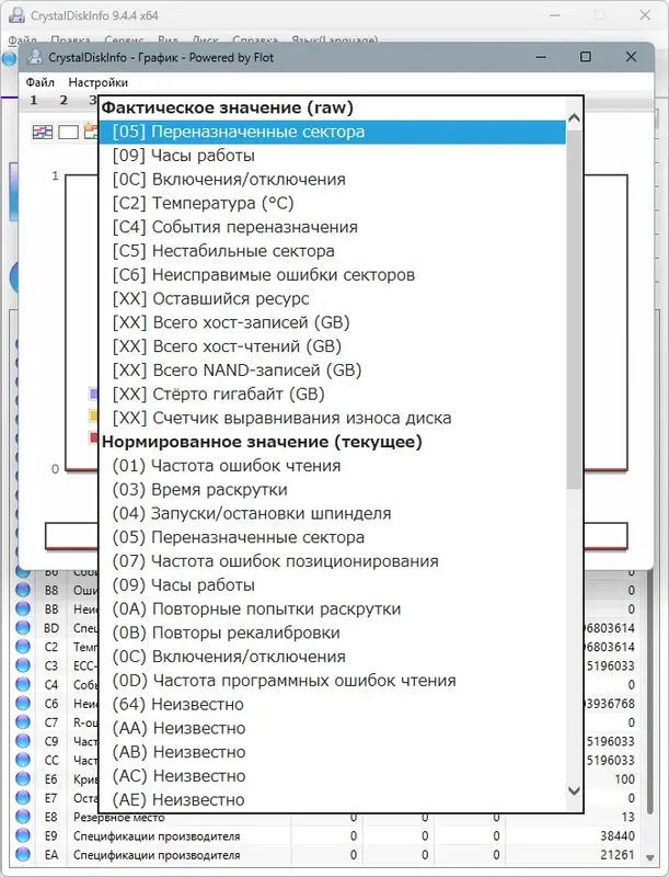 - Отображение детальной информации о дисках, включая температуру и параметры атрибутов системы самодиагностики.