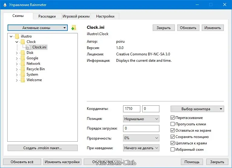 Rainmeter — это популярное программное обеспечение для отображения системных данных и информационных панелей на рабочем столе Windows. Оно позволяет наблюдать за загрузкой CPU, объемом свободной и занятой памяти, а также мониторить сетевой трафик и погоду. Благодаря широкому выбору скинов, пользователь может оформить интерфейс по своему вкусу, создавая уникальные визуальные решения. Кроме того, программа поддерживает создание собственных модулей и виджетов, что делает её универсальным инструментом для персонализации системы.