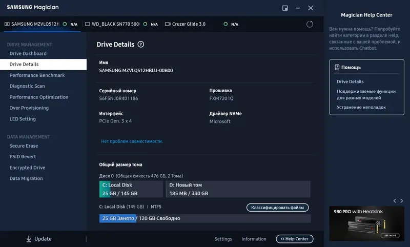 Использование Samsung Magician значительно увеличивает эффективность работы SSD и защищает важную информацию.