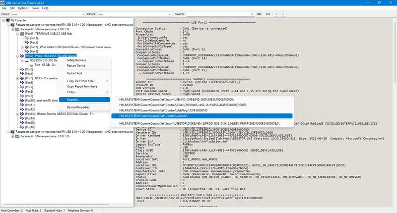 UsbTreeView — это мощный и удобный инструмент для тестирования USB-устройств, который значительно превосходит стандартные средства Windows по функциональности и наглядности. Он подходит для профессионалов, которым необходим быстрый доступ к расширенной информации о подключенных девайсах и возможность управления ими.