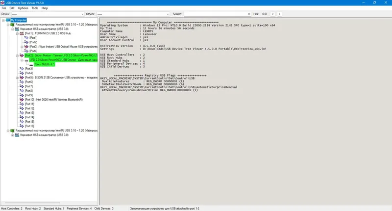 - Подробное отображение информации о USB-устройствах и интерфейсах