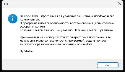DefenderKiller — это универсальный инструмент для отключения встроенной системы защиты Windows Defender, который предназначен для пользователей, нуждающихся в полной деактивации антивирусной службы. Эта программа подойдет для тех, кто хочет временно отключить Защитник Windows или полностью убрать его из системы, чтобы установить стороннее антивирусное решение или выполнить специальные настройки. DefenderKiller работает быстро и эффективно, поддерживая операционные системы Windows 7 и выше, и обладает портативной версией для удобства использования без установки.