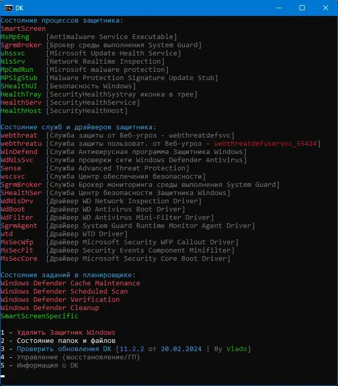 Программа DefenderKiller помогает администраторам и опытным пользователям быстро управлять функциями безопасности Windows, обеспечивая гибкость в настройке системы.