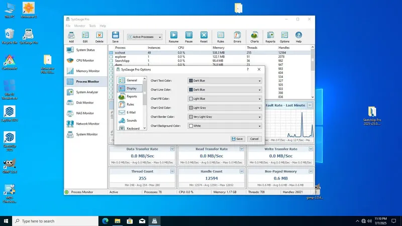 SysGauge — это универсальный системный монитор, предоставляющий детальную информацию о состоянии аппаратных и программных ресурсов компьютера. Его интерфейс включает настраиваемые модули для отслеживания ключевых показателей, таких как загрузка процессора, использование оперативной памяти, активность дисков, скорость передачи данных по сети и другие параметры. Утилита позволяет сохранять отчеты, анализировать историю и подключаться к удалённым системам для комплексного мониторинга. Благодаря широким возможностям настройки и расширенным функциям, SysGauge обеспечивает полноценное управление и контроль за состоянием системы в реальном времени.
