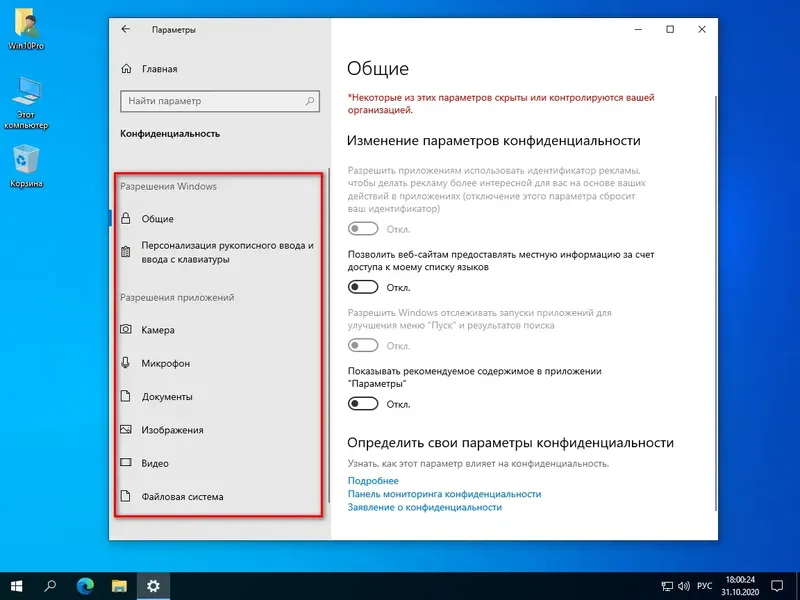 - Настройка параметров безопасности и конфиденциальности
