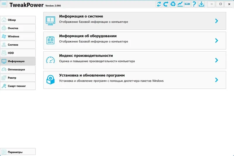 TweakPower — это мощное программное обеспечение для оптимизации и настройки системы Windows. Объединив множество инструментов в удобный графический интерфейс, программа позволяет повысить производительность, очистить систему и повысить безопасность компьютера. Благодаря широкому набору функций, TweakPower подходит как для опытных пользователей, так и для тех, кто хочет быстро улучшить работу своего ПК.