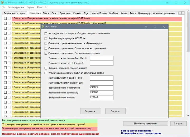 Как пользоваться W10Privacy