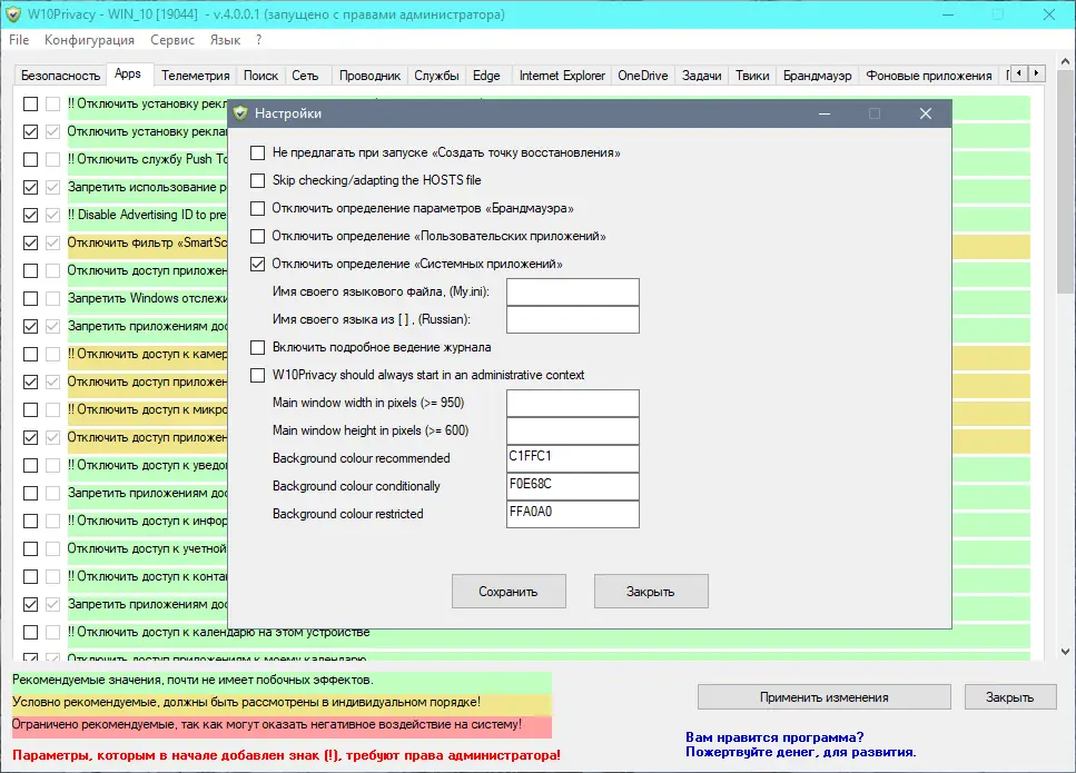 W10Privacy — это специализированное программное обеспечение, разработанное для изменения настроек Windows 10 с целью минимизации сбора данных и повышения защиты пользовательских данных. Программа предлагает широкий набор функций, включая настройку конфиденциальности, управление службами и интеграциями, а также оптимизацию работы системы. Благодаря визуальному отображению параметров с цветовой кодировкой, пользователь легко ориентируется в доступных опциях и принимает решения о включении или отключении конкретных функций.