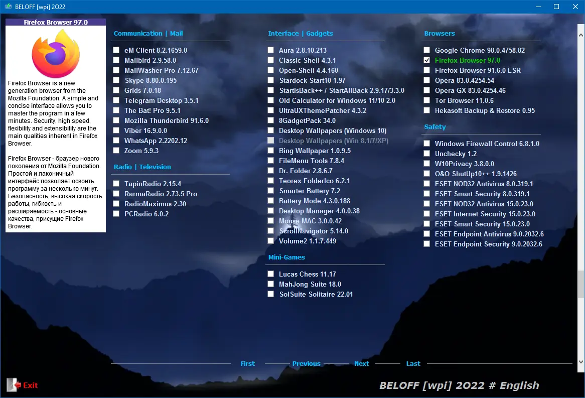 BELOFF — это универсальный сборник программ, предназначенный для автоматической установки и портативного использования на операционных системах Windows. В коллекцию входит множество категорий программ, включая офисные редакторы, графические редакторы, медиаплееры, утилиты для работы с драйверами и многое другое. Благодаря встроенным функциям, таким как автоматическая установка, мультизагрузка и поддержка виртуальных дисков, этот сборник значительно упрощает подготовку и настройку системы, а также ускоряет процесс установки необходимых приложений. Скачать BELOFF можно на странице, чтобы получить полный набор инструментов для работы и развлечений.