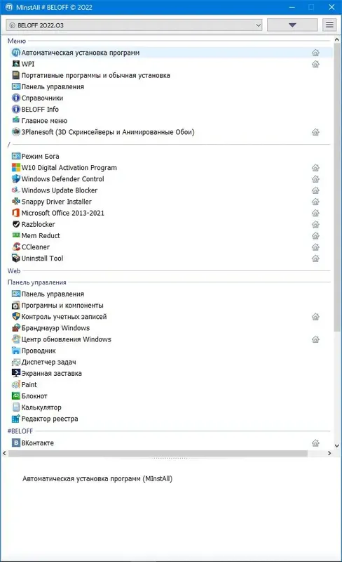 BELOFF — это универсальный сборник лучших программ для Windows, предназначенный для автоматической установки, портативного использования и мультизагрузки. Он включает в себя широкий набор утилит, драйверов, офисных пакетов, мультимедийного софта и инструментов для обслуживания системы. Скачать этот сборник можно на официальной странице, а также через торрент для удобства и быстрого получения последней версии 2025.08.