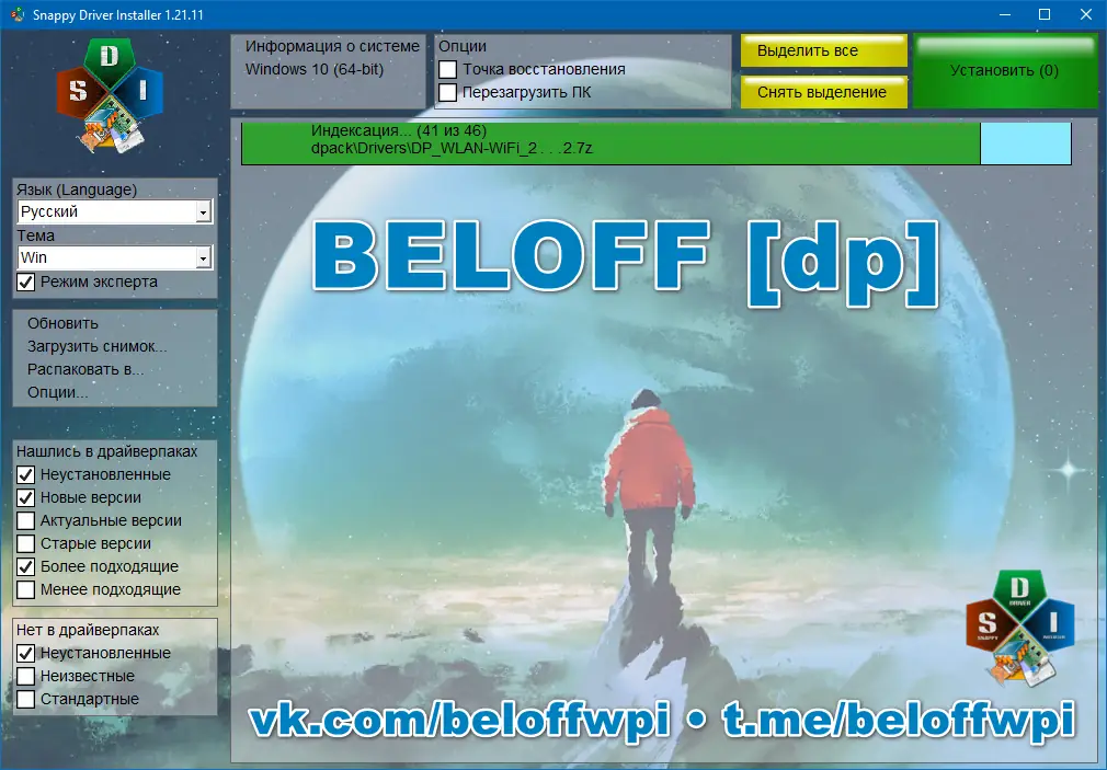 BELOFF представляет собой комплект программных решений, объединённых в удобную сборку для автоматической установки драйверов и системных компонентов Windows. В сборник входит множество драйвер-паков, оптимизированных под разные устройства и модели, что позволяет быстро скачать и установить необходимые обновления без необходимости поиска по отдельности. Программа идеально подходит для специалистов по обслуживанию ПК, системных администраторов и пользователей, желающих подготовить компьютер к работе или переустановке системы в кратчайшие сроки.