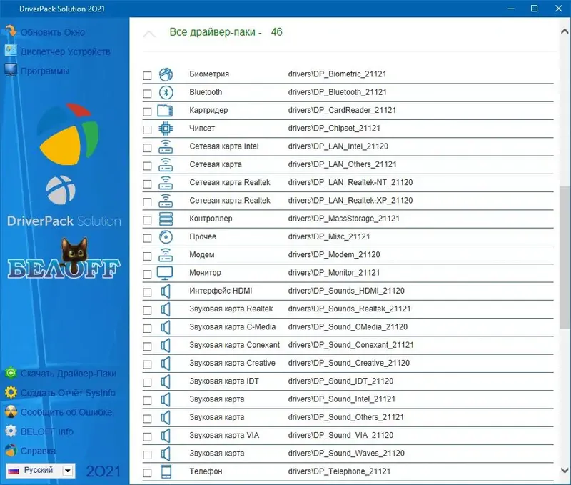 BELOFF — это универсальный сборник программ для Windows, включающий автоматическую установку драйверов и множество полезных утилит. Он предназначен для быстрого и удобного обновления и настройки системы, что особенно актуально при переустановке операционной системы или сборке нового ПК. В комплект входит множество наборов драйверов и инструментов, позволяющих скачать и установить всё необходимое за минимальное время.