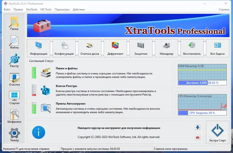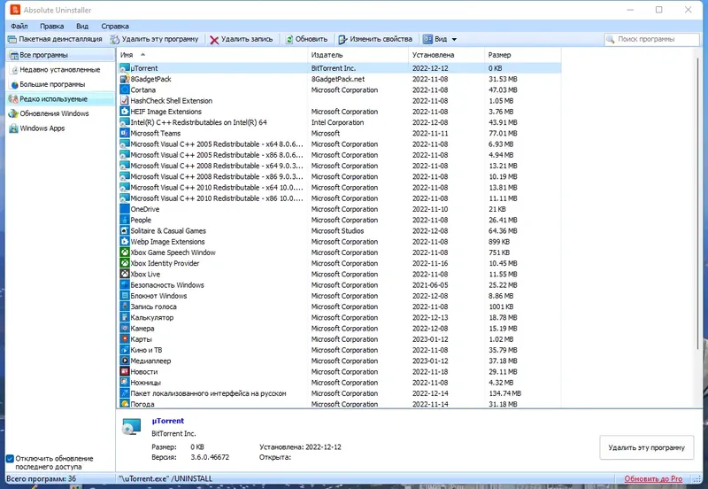 - Возможность быстрого удаления программ и очистки системы.