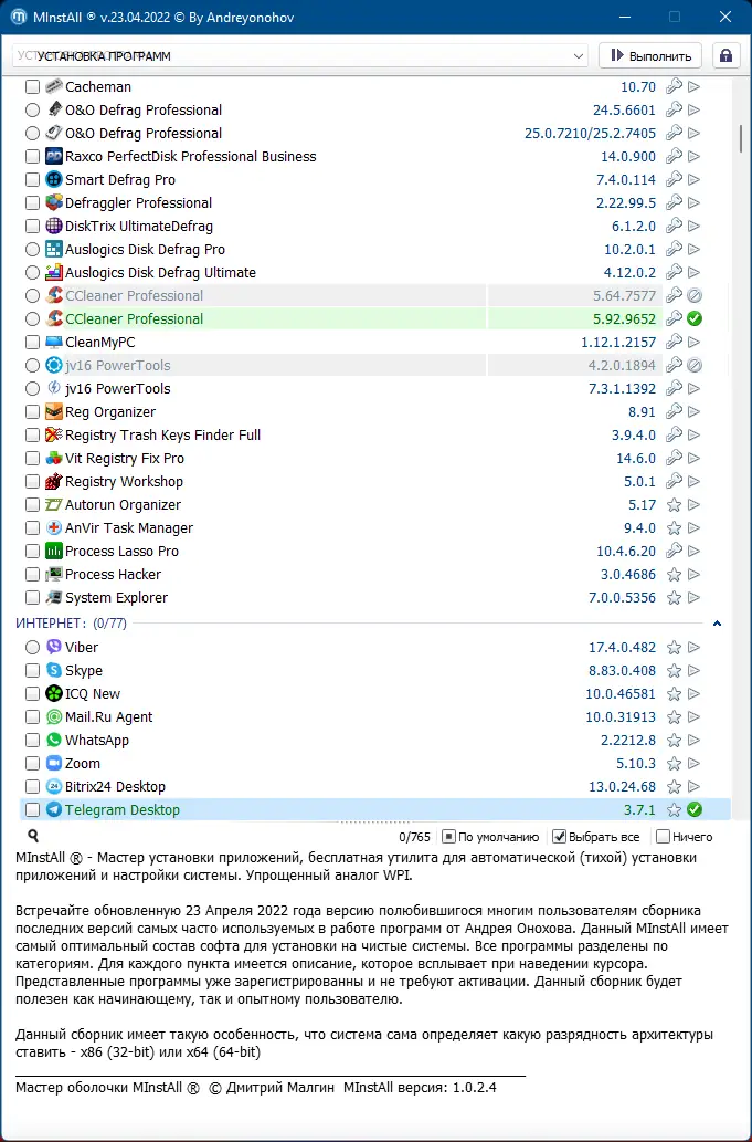 МInstAll — это современный сборник программ для автоматической установки и обслуживания операционных систем Windows. Обновленная версия, выпущенная 23 апреля 2022 года, включает последние версии популярных утилит и программ, упакованных в удобную оболочку. Это решение отлично подойдет как новичкам, так и опытным пользователям, желающим быстро подготовить чистую систему с необходимым набором инструментов.