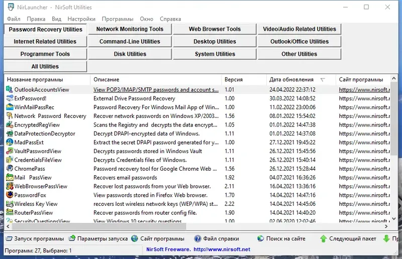 NirLauncher — это универсальный пакет из более чем 200 портативных утилит, предназначенных для ежедневного использования на компьютере. В состав входит широкий набор инструментов для работы с сетью, редактирования системных настроек, восстановления паролей, работы с браузерами и дисковыми разделами. Все программы в пакете не требуют установки и могут быть запущены с любого носителя, что делает NirLauncher удобным решением для системных администраторов и опытных пользователей.