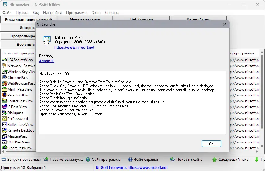 NirLauncher — это сборник портативных программ, объединённых в единый пакет для удобства пользователей. В него входят утилиты для редактирования контекстного меню, работы с сетью, восстановления паролей, управления файлами и шрифтами. Все инструменты имеют версии для 32-х и 64-х разрядных систем, что обеспечивает совместимость с большинством современных операционных систем Windows. Благодаря понятной системе сортировки и фильтрации, найти нужную программу становится очень просто, что делает NirLauncher незаменимым помощником как для профессиональных IT-специалистов, так и для обычных пользователей.