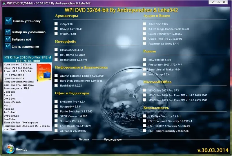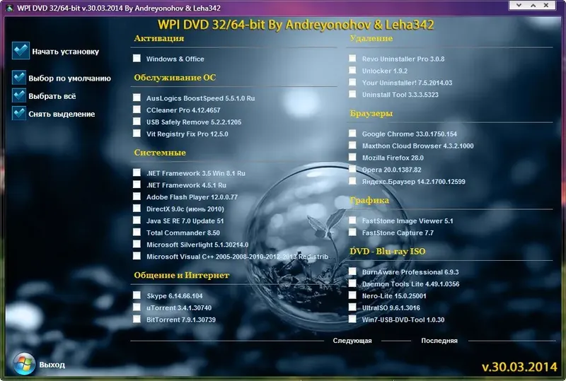 WPI DVD — это обновленный сборник программного обеспечения, предназначенный для быстрой и удобной установки необходимых приложений на чистую систему. В данной версии, выпущенной 30 марта 2014 года, собраны последние версии популярных программ, разделённые по категориям, что значительно упрощает процесс выбора и установки. Сборник автоматически определяет разрядность системы и подбирает соответствующую архитектуру, обеспечивая совместимость и стабильную работу программ. Все представленные программы уже зарегистрированы и не требуют активации. Этот комплект отлично подходит как для новичков, так и для опытных пользователей, стремящихся быстро подготовить систему к работе или переустановить её с минимальными затратами времени.