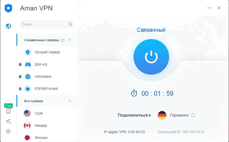 AmanVPN — это универсальное решение для обеспечения безопасности и анонимности в сети. Благодаря простому интерфейсу и высокой скорости работы, программа легко интегрируется в повседневную деятельность пользователя. Она помогает скрывать реальный IP-адрес, шифровать интернет-активность и избегать слежки со стороны третьих лиц. Кроме того, AmanVPN работает на платформе Windows и подходит для различных сценариев использования, будь то просмотр контента или работа с чувствительной информацией.