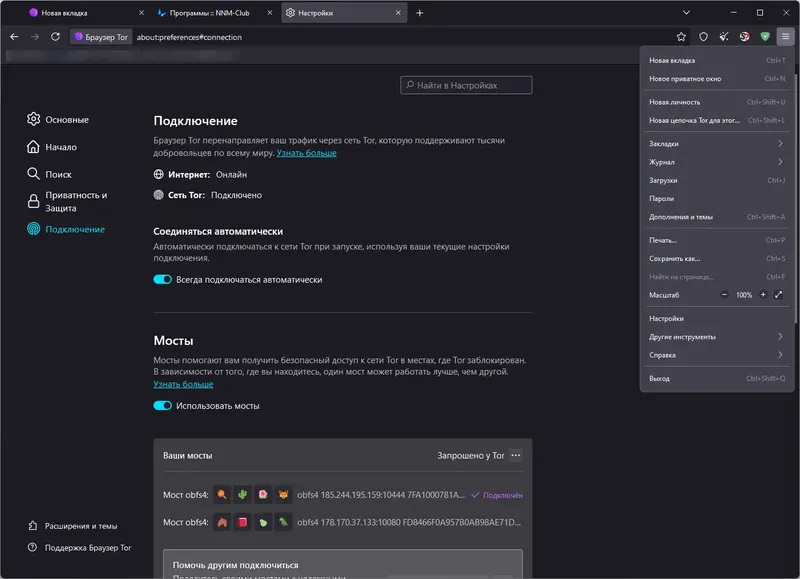 Tor Browser — это официальный продукт, созданный для безопасного и анонимного интернет-серфинга. Он включает в себя специально настроенный браузер Firefox и программное обеспечение Tor, которое маршрутизирует интернет-трафик через сеть мостов, скрывая ваше реальное местоположение и IP-адрес. Такой подход делает невозможным отслеживание действий пользователя и позволяет безопасно посещать сайты, даже если они заблокированы или подвергаются цензуре. Программа не требует установки и может быть запущена с любого носителя информации, что делает её удобной для использования в различных условиях. Особое внимание уделяется защите приватности, а также предотвращению обнаружения вашего присутствия в сети.